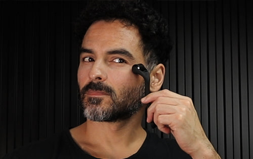 Gently roll over target areas in vertical, horizontal, and diagonal directions (5-10 passes each). Apply light pressure, never drag sideways. Avoid being too close to eye area.