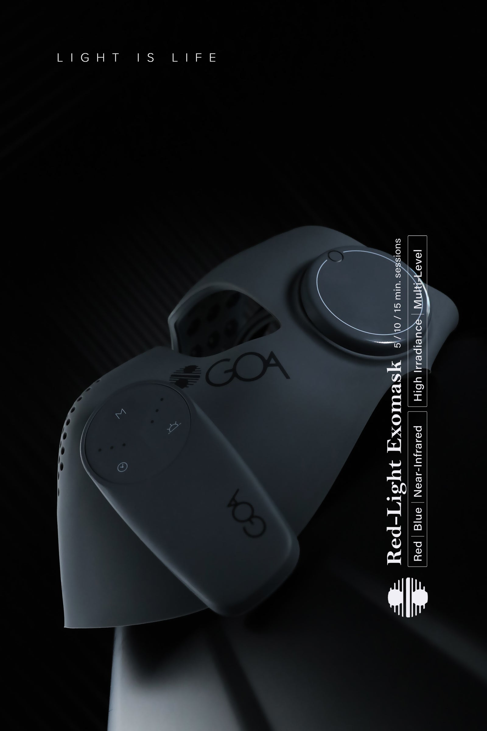 Do not look into the LEDs directly when in use. The Exomask is designed with eye cutouts to avoid direct exposure. While red and near-infrared light can reach the eyes indirectly, the intensity and exposure time used in the Exomask are within established safety limits. Do not turn the mask on before strapping it securely to your face. If you’re sensitive to light, optional blackout goggles can be used for additional comfort.